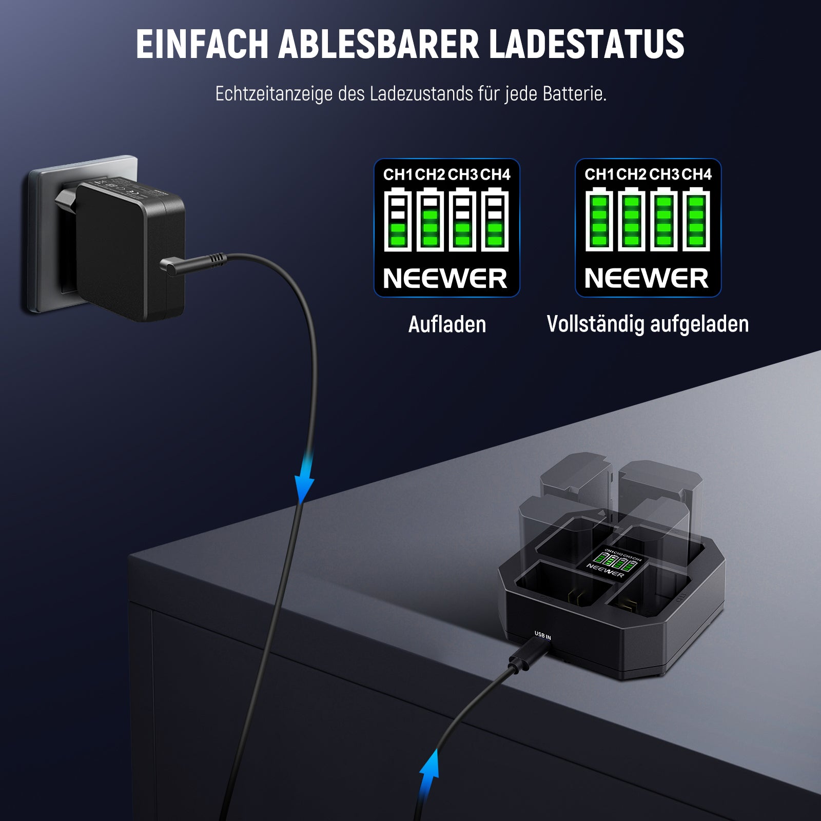NEEWER NW-Z4 4 Kanal USB Ladegerät für NP-FZ100 Kamera Akku mit 45W PD Ladegerät