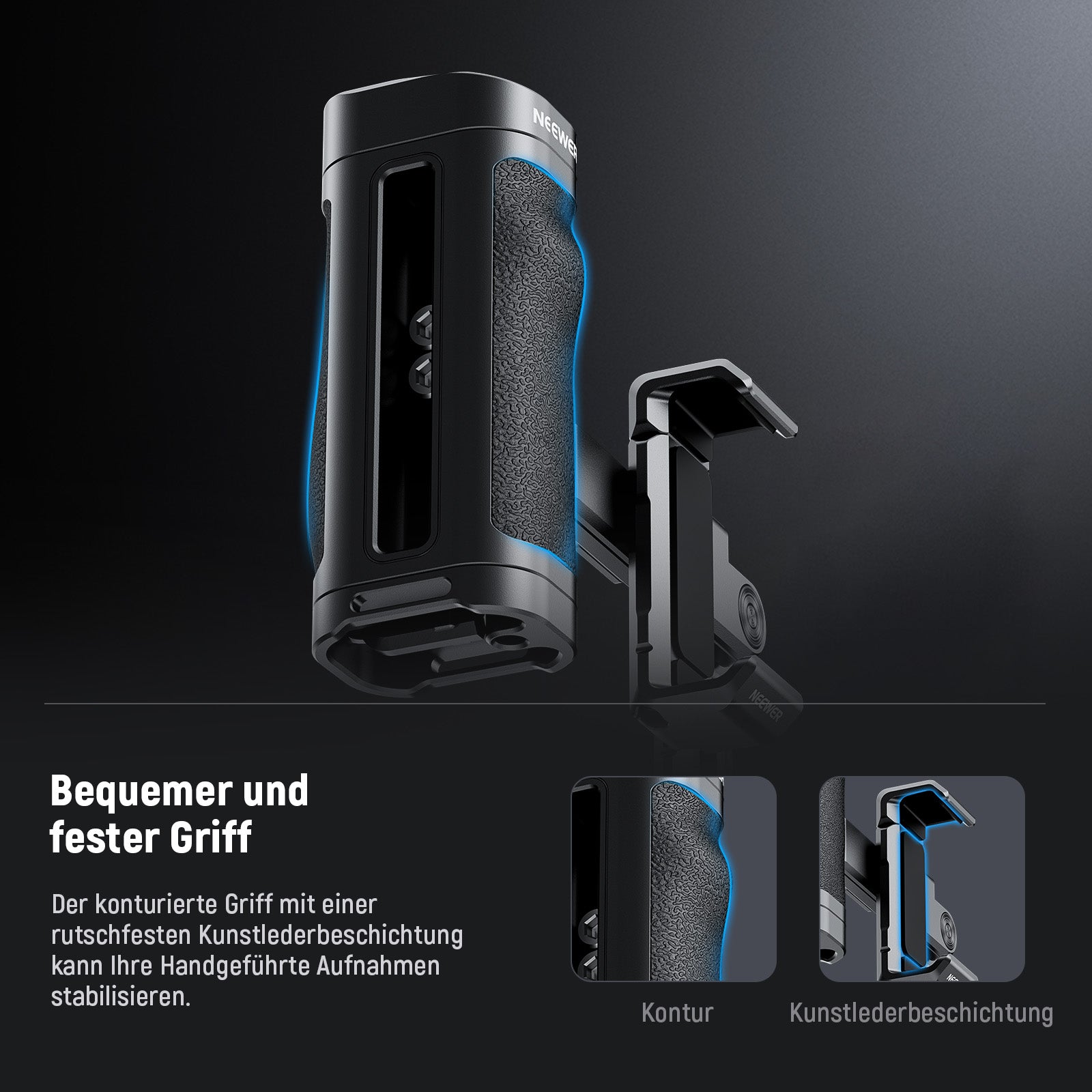 - Ausreichend Zubehör Montagepunkte- Mit drei cold shoes und einem 1/4" Gewinde kann dieser Seitengriff mit anderen NEEWER Produkten für ein professionelles Video Rig verwendet werden. Dazu gehören das CM14 Pro Mini Mikrofon, das PL81 LED Videolicht und das bunte RGB61/RGB62 Füll Licht, flexibles T30 Stativ und mehr