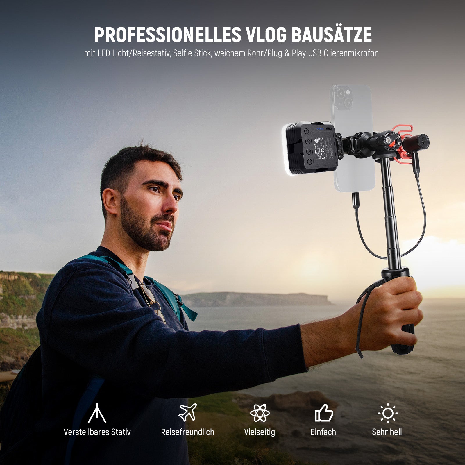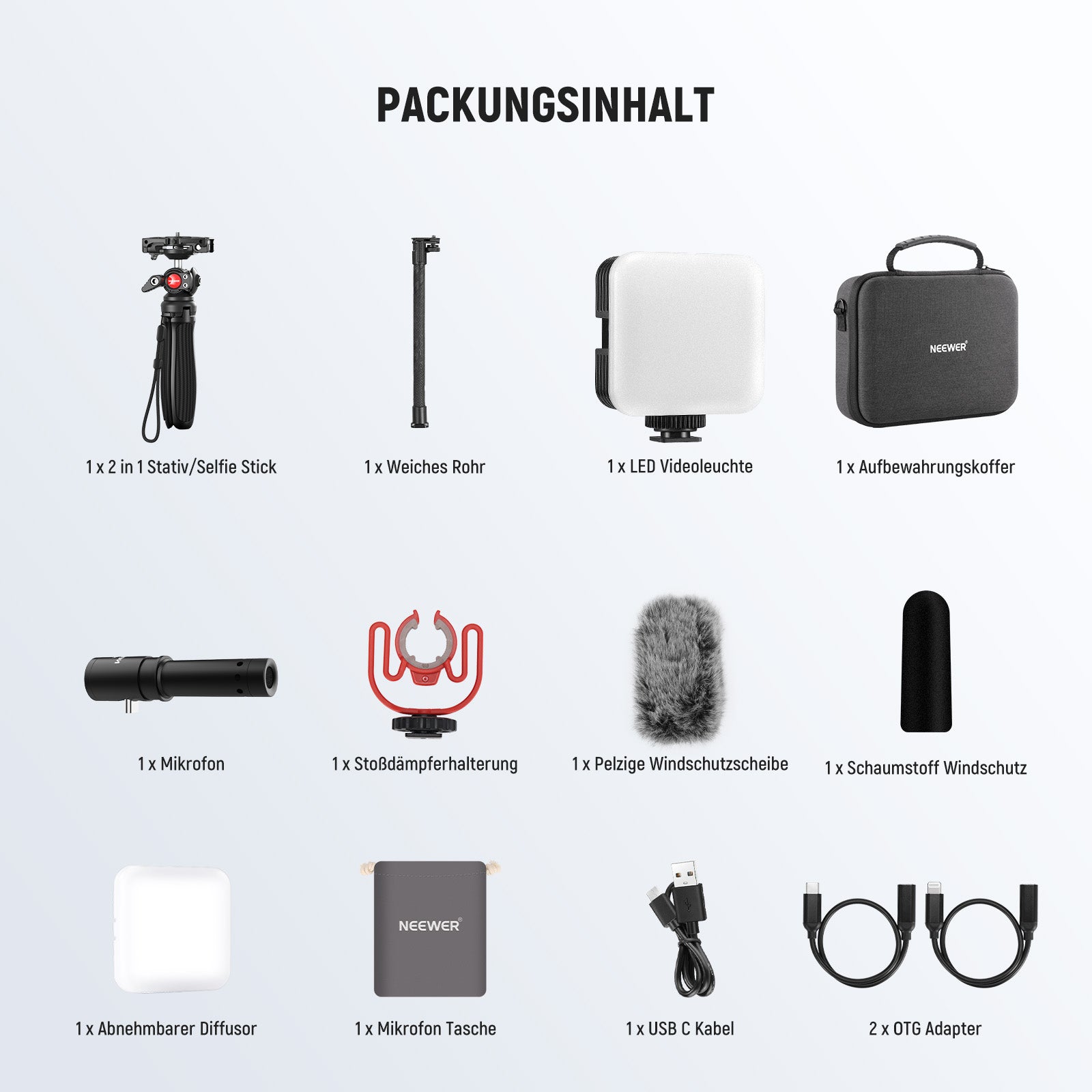 NEEWER PA045 Handy Vlogging Kit mit LED Licht/Reisestativ/Mikro