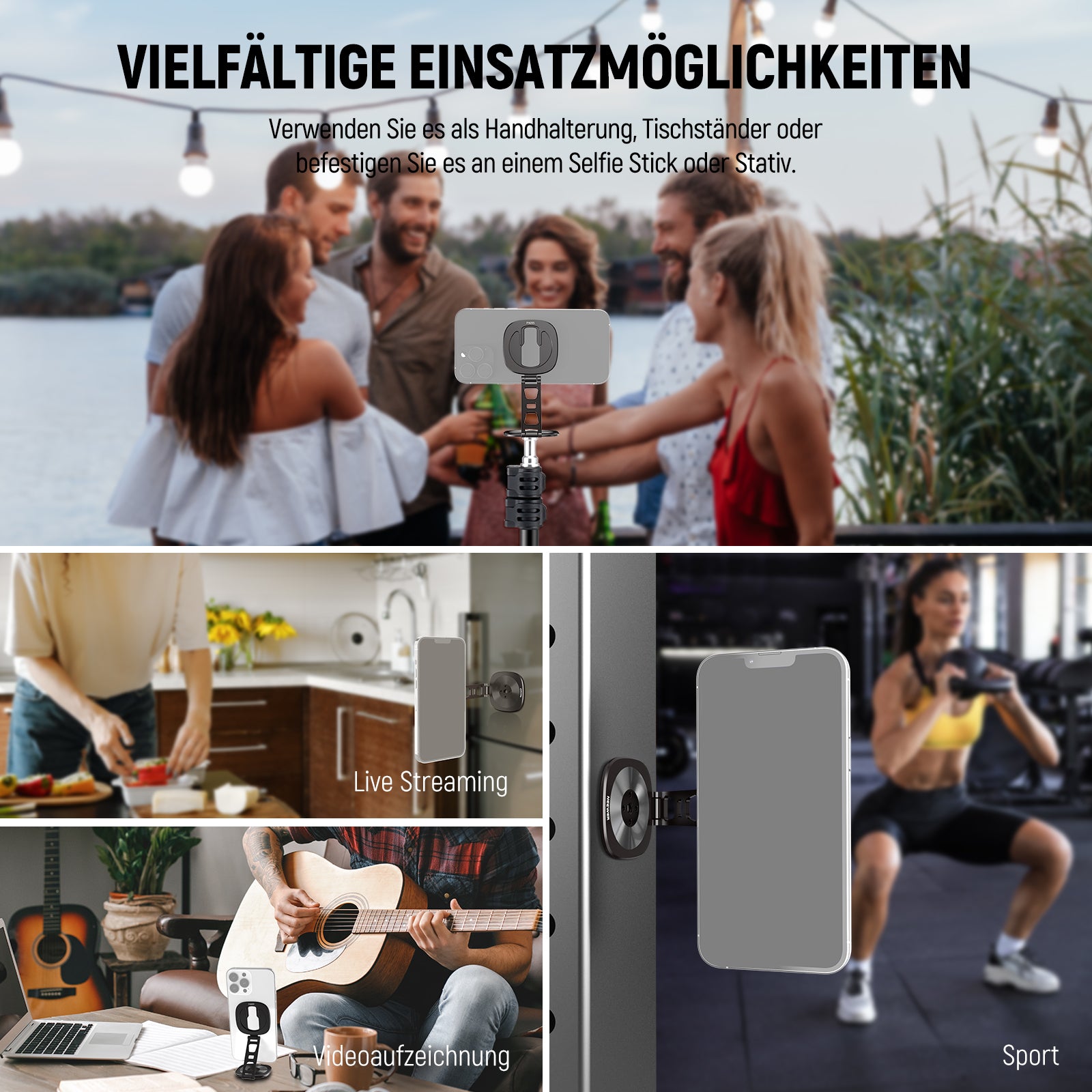- 【Verstellbar und flexibel】 Die Smartphone Halterung für die Hand und den Schreibtisch ermöglicht eine Drehung um 360° und eine Neigung um 270°. Ein unverzichtbares Fotografie Zubehör für Content Creator und Influencer, ideal für POV Aufnahmen und Videoaufnahmen