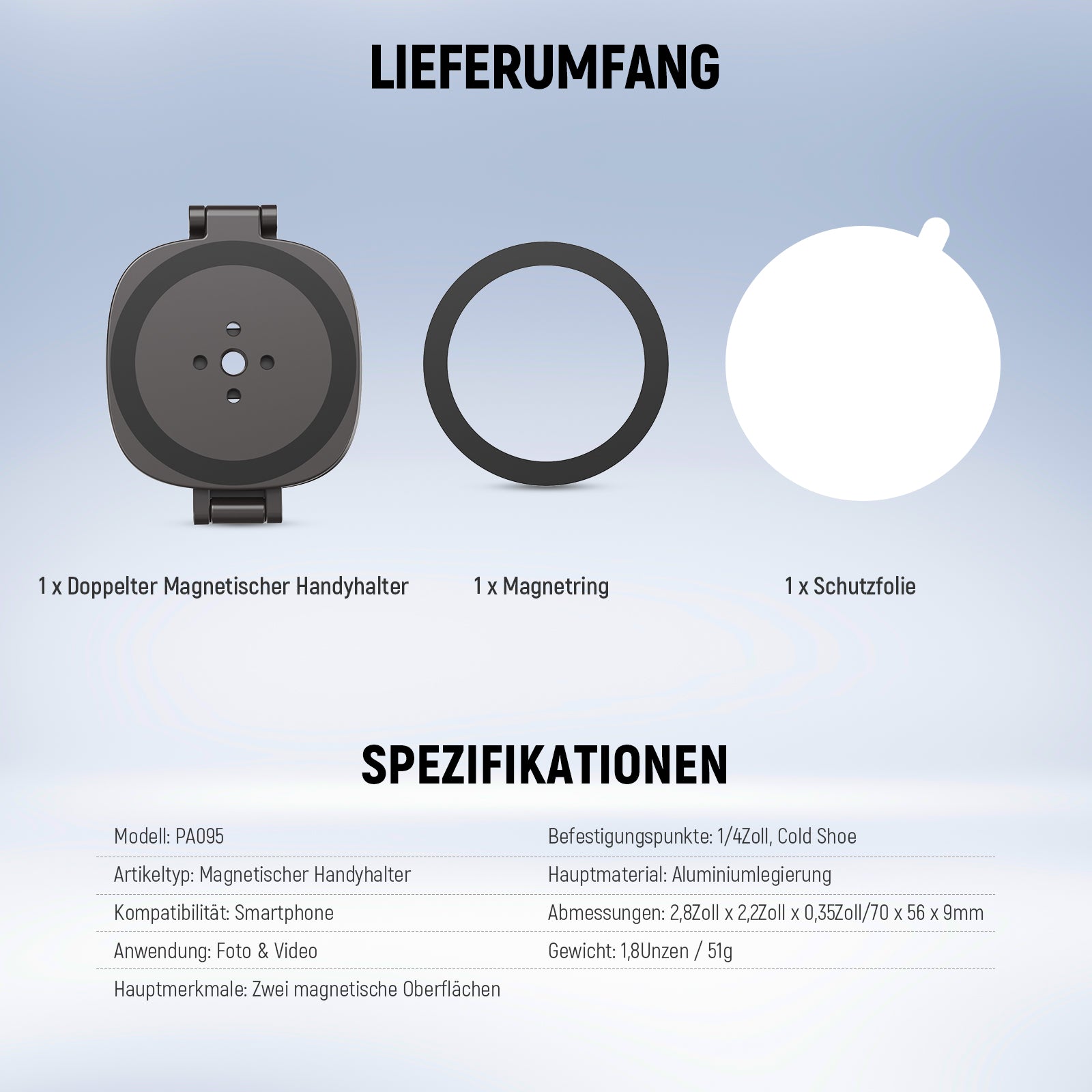- 1 × Smartphone-Halterung mit doppelter Magnetoberfläche