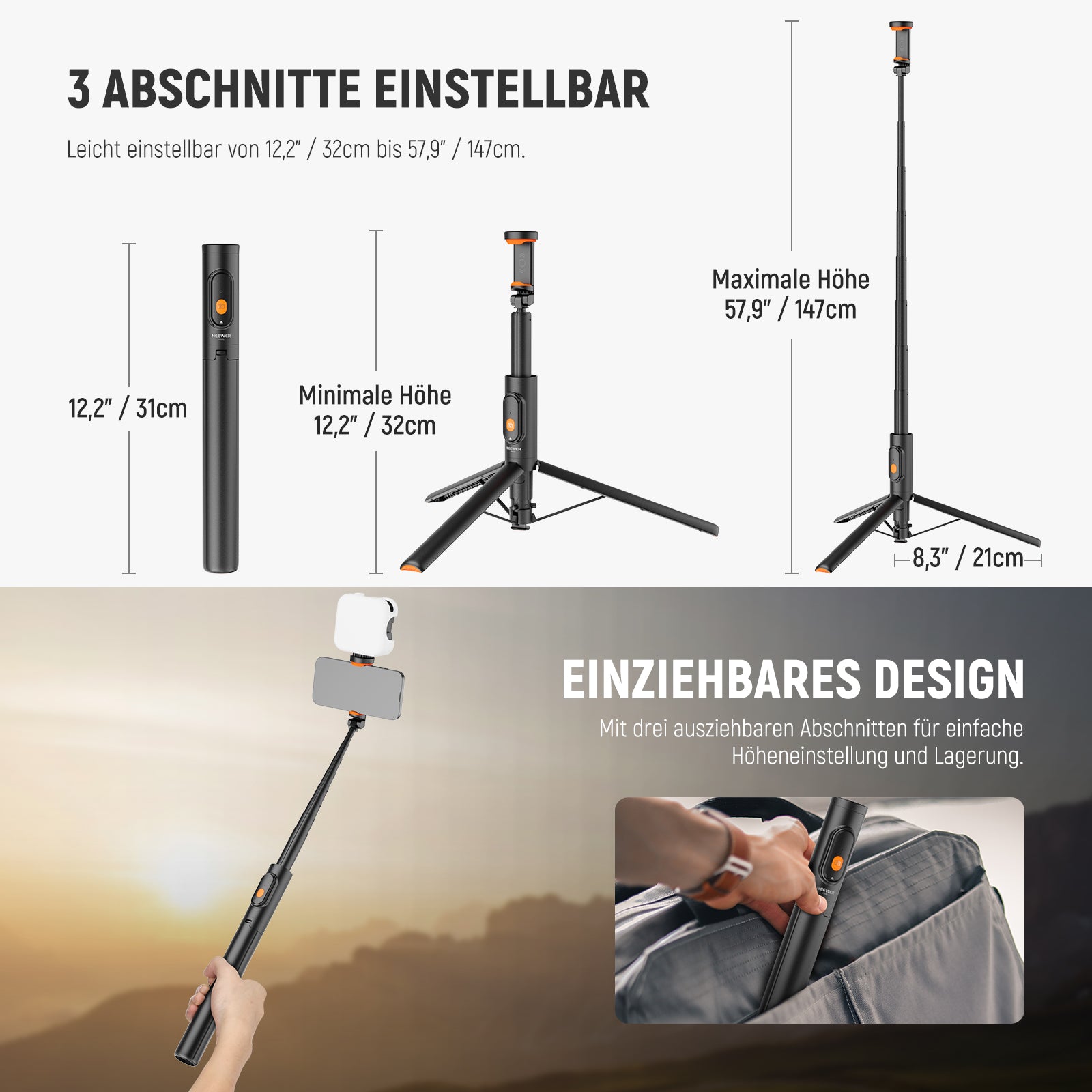 - Vielseitig einsetzbar- Vollständig ausgezogen als Tischstativ verwendbar oder in der Hand als stabiler Griff – für schnellen Wechsel zwischen Stativ- und Griffmodus. Perfekt für Selfies, Porträts, Vlogs, Livestreams, Fotografie, Videoaufnahmen, Content Creation und vieles mehr – ein Must-have für Influencer und Kreative.