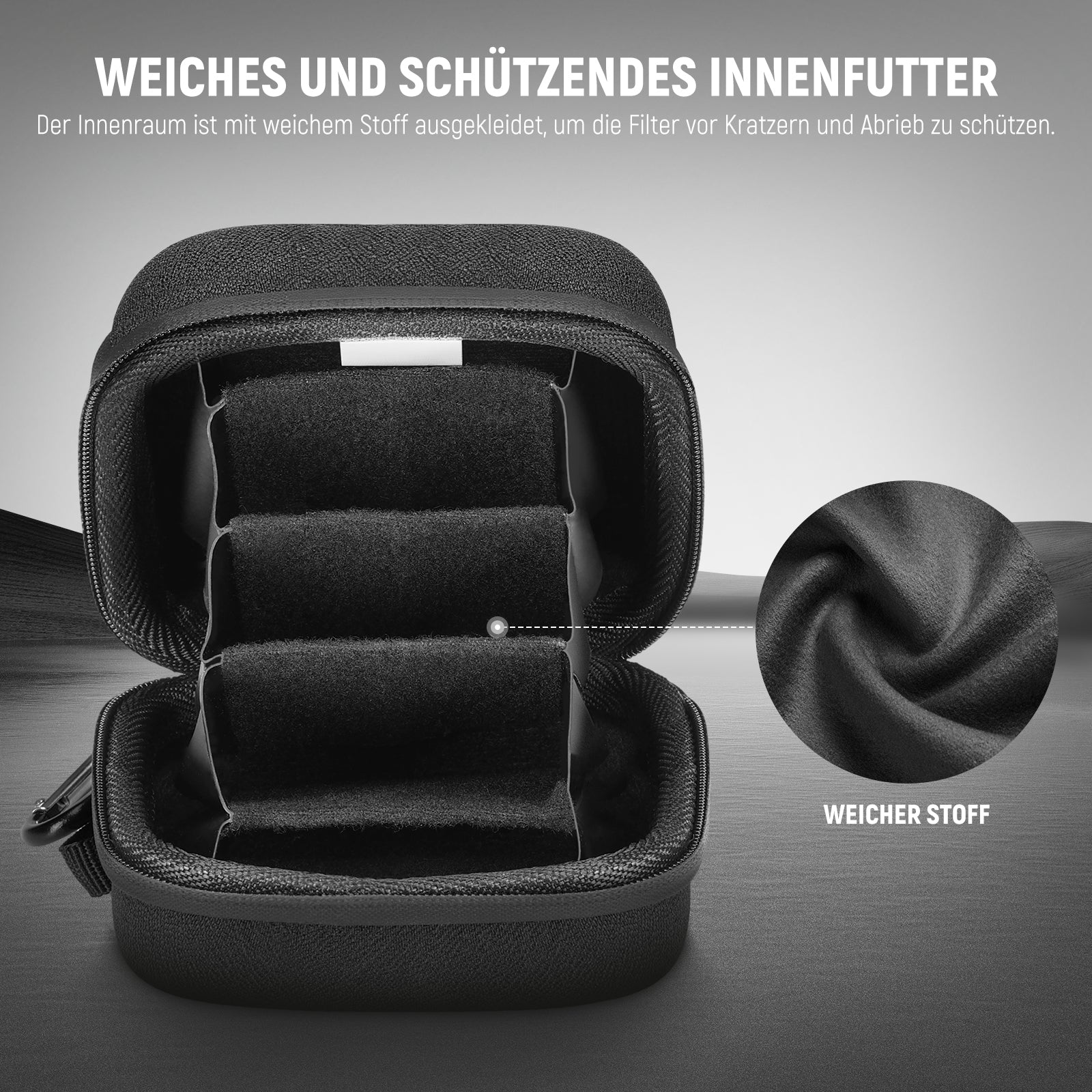 - Weiches und schützendes Innenfutter- Der Innenraum ist mit weichem Stoff ausgekleidet, um die Filter vor Kratzern und Abrieb zu schützen