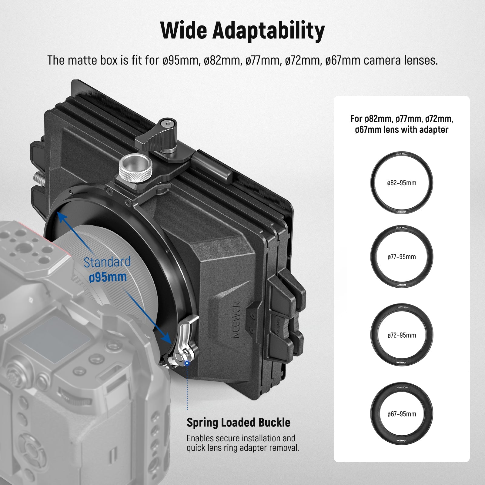 NEEWER PG002 Mini Mattbox mit Zwei 4 "x5,65 Filterfächern & 4 Adapterring