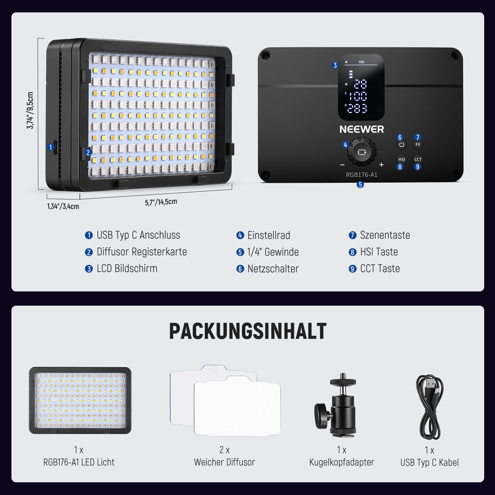 NEEWERRGB 176-A1 LED Videoleuchte Panel