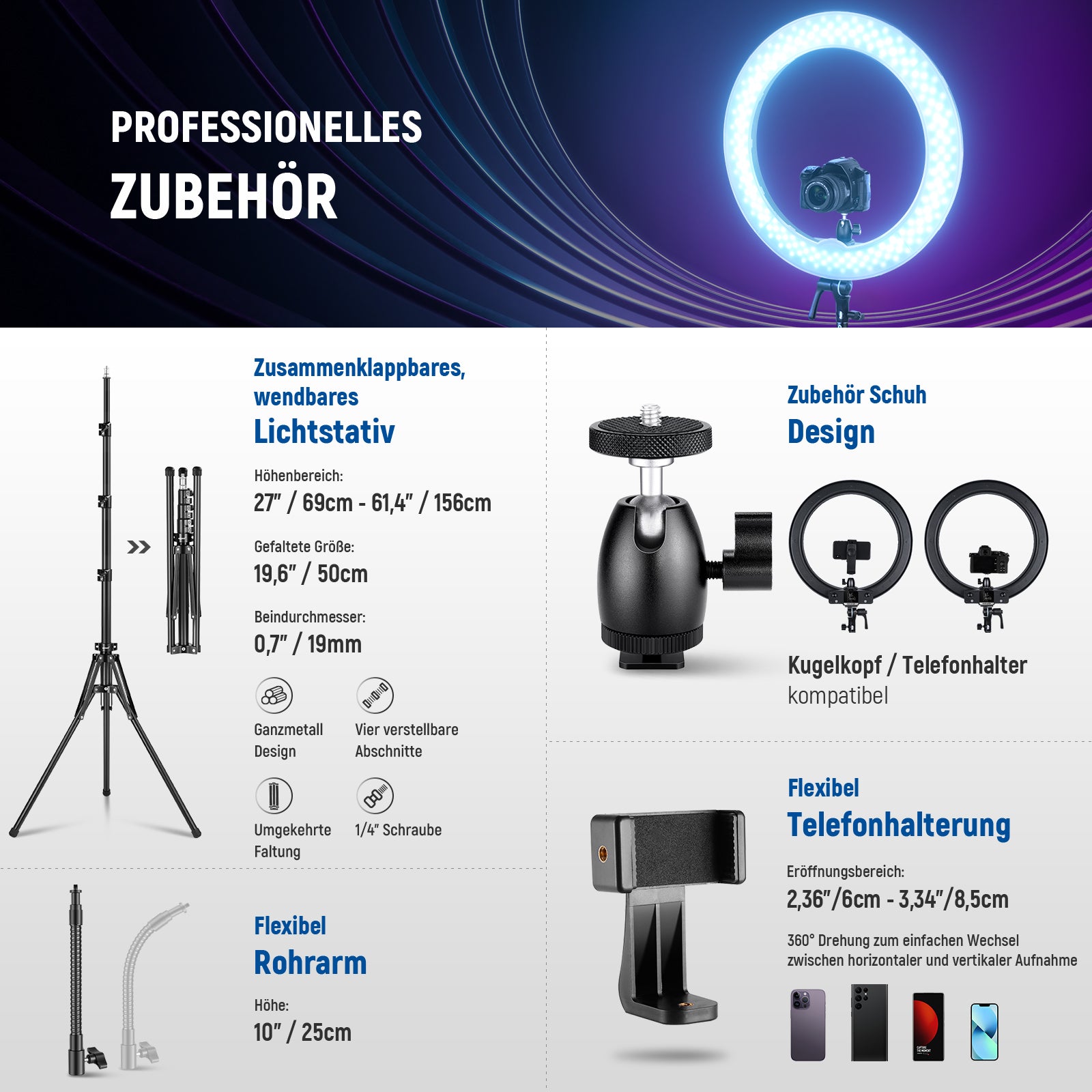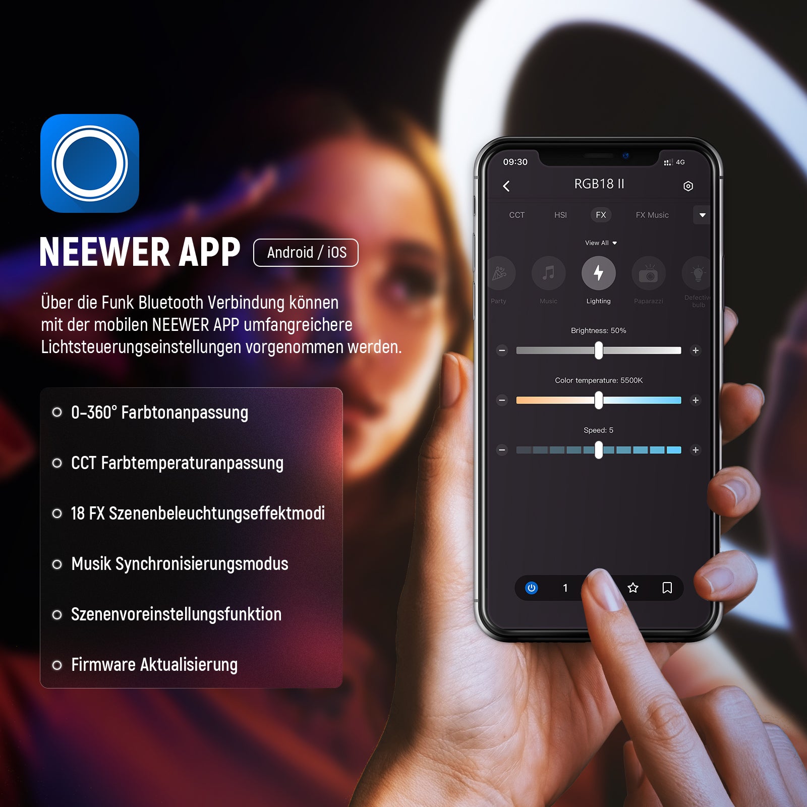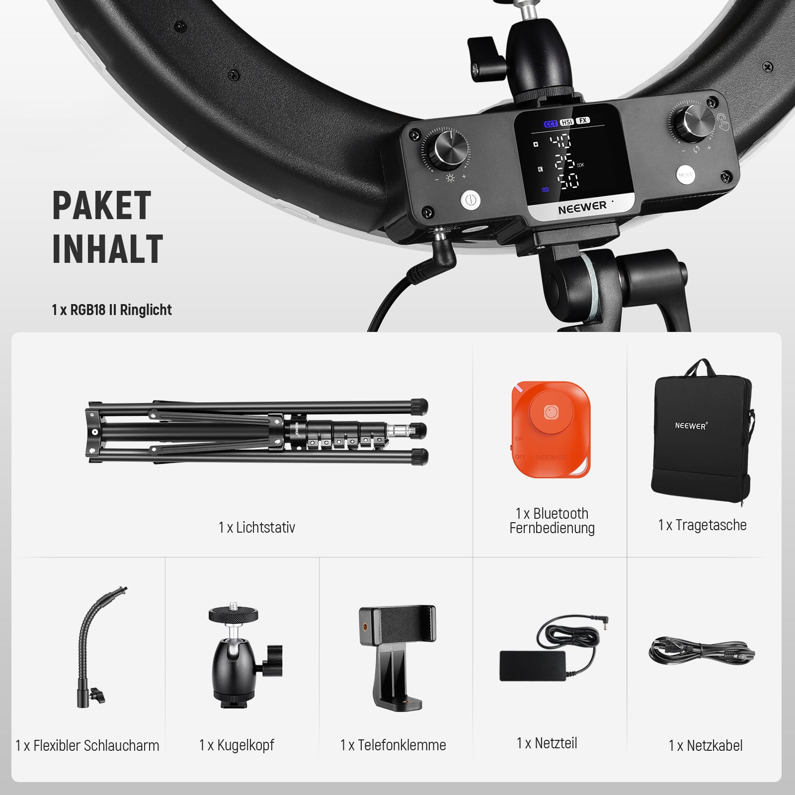 NEEWER RGB18 II 18" Tragbares RGB LED Ringlicht APP Steuerung