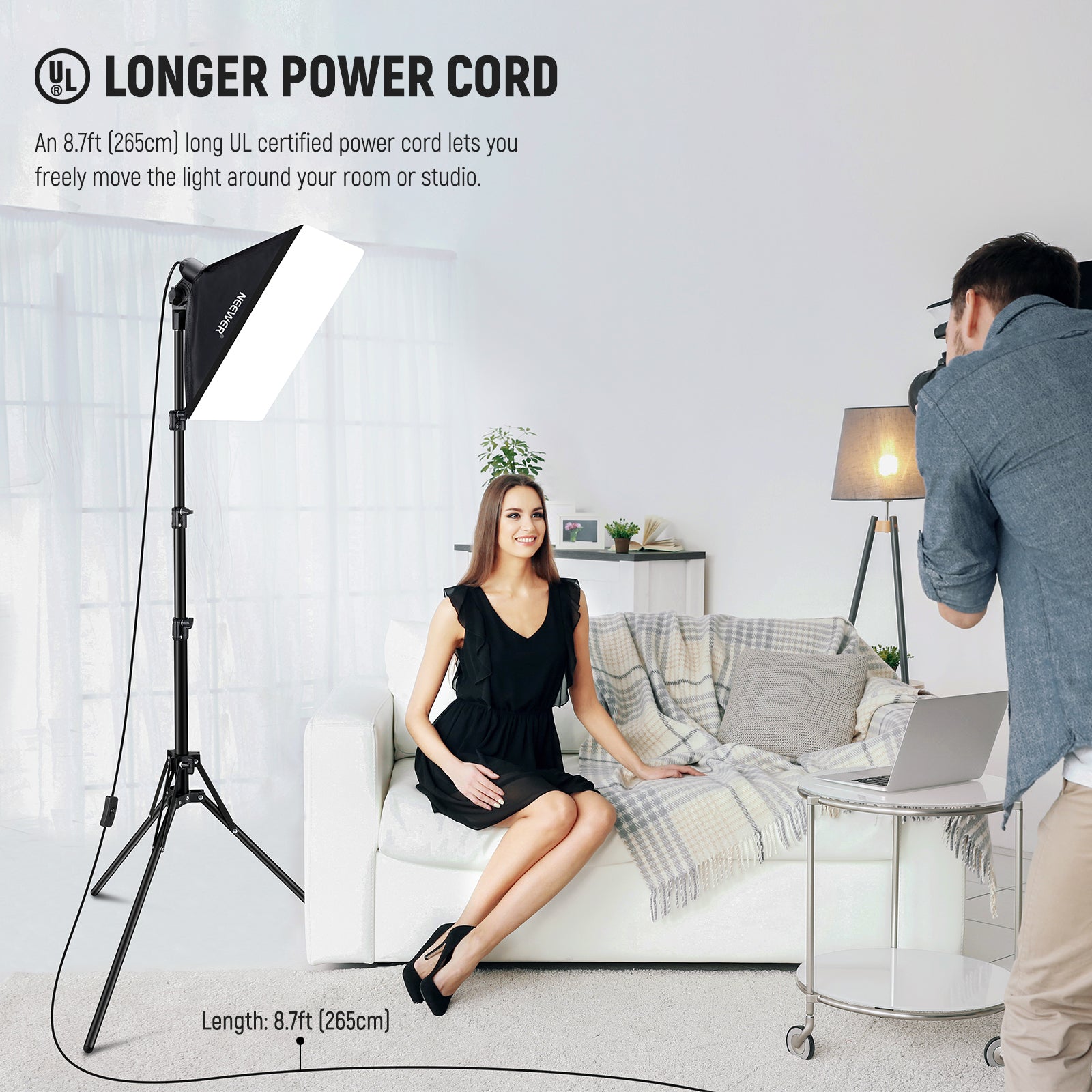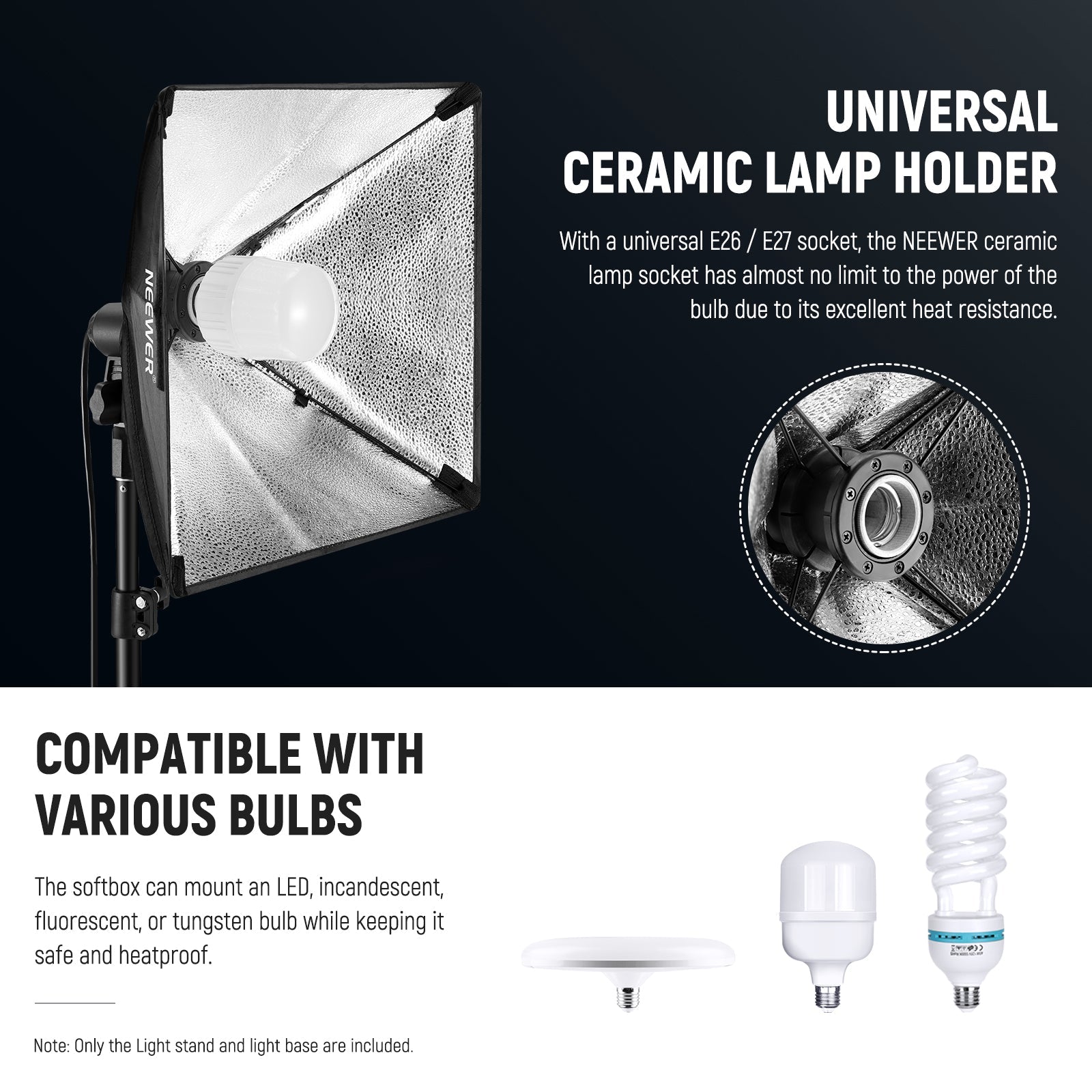 - 【Eingebaute Lampenfassung und Kabel】 Mit einer universellen E27 Lampenfassung aus Porzellan kann die Softbox eine LED, Glüh, Leuchtstoff oder Wolframlampe montieren und ist gleichzeitig sicher und hitzebeständig. Das 265cm lange Kabel ermöglicht eine flexiblere Platzierung der Leuchte