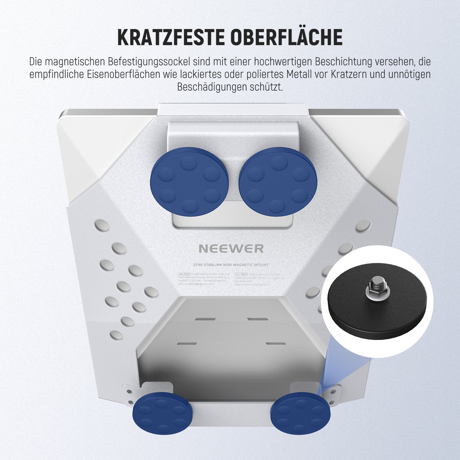 - Kratzfeste Oberfläche- Die magnetischen Montagesockel sind mit einer hochwertigen Beschichtung versehen, die empfindliche Eisenoberflächen wie lackiertes oder poliertes Metall vor Kratzern und unnötigen Schäden schützt