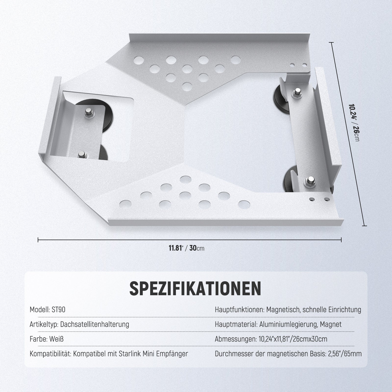 - Magnetischer Basisdurchmesser: 2,56"/65mm