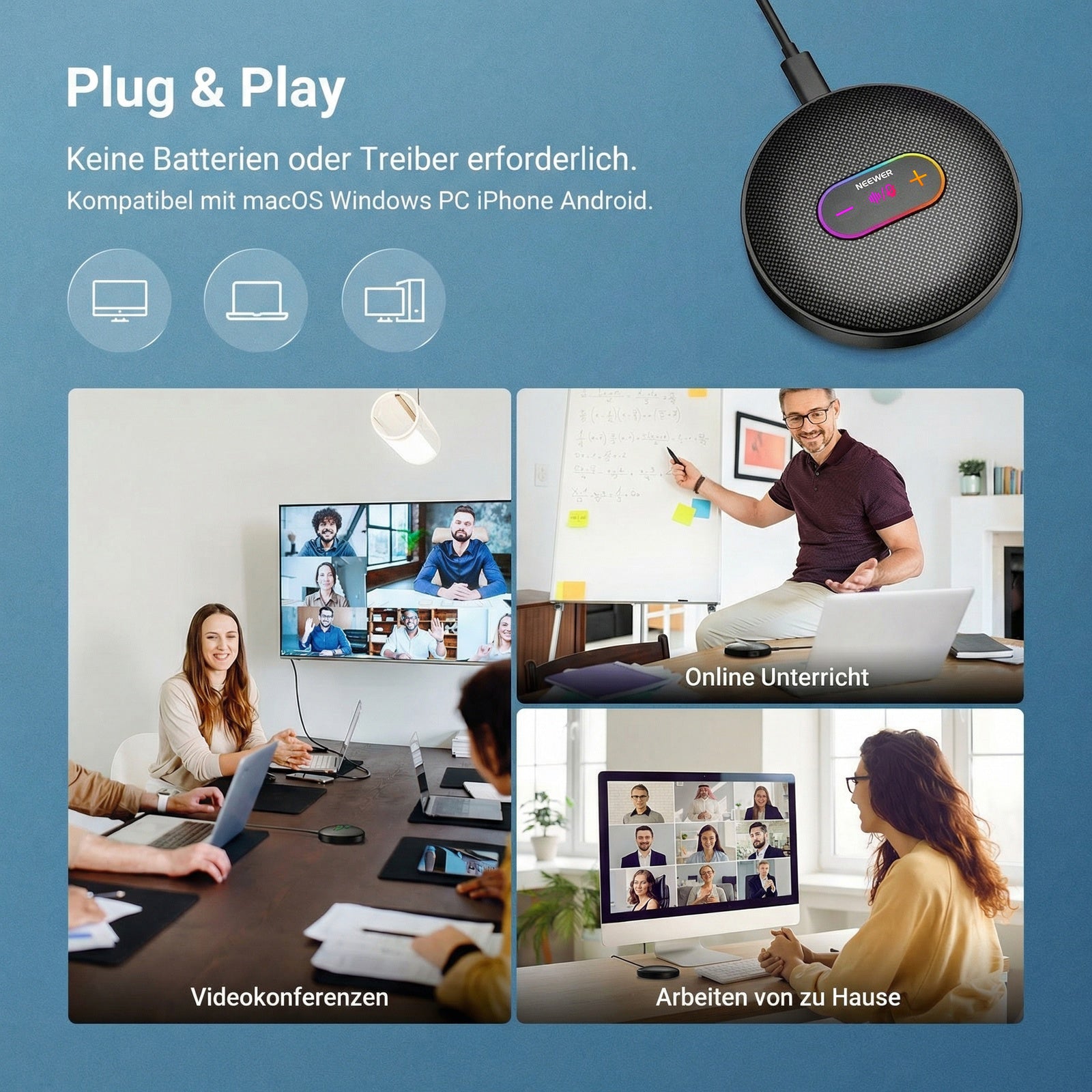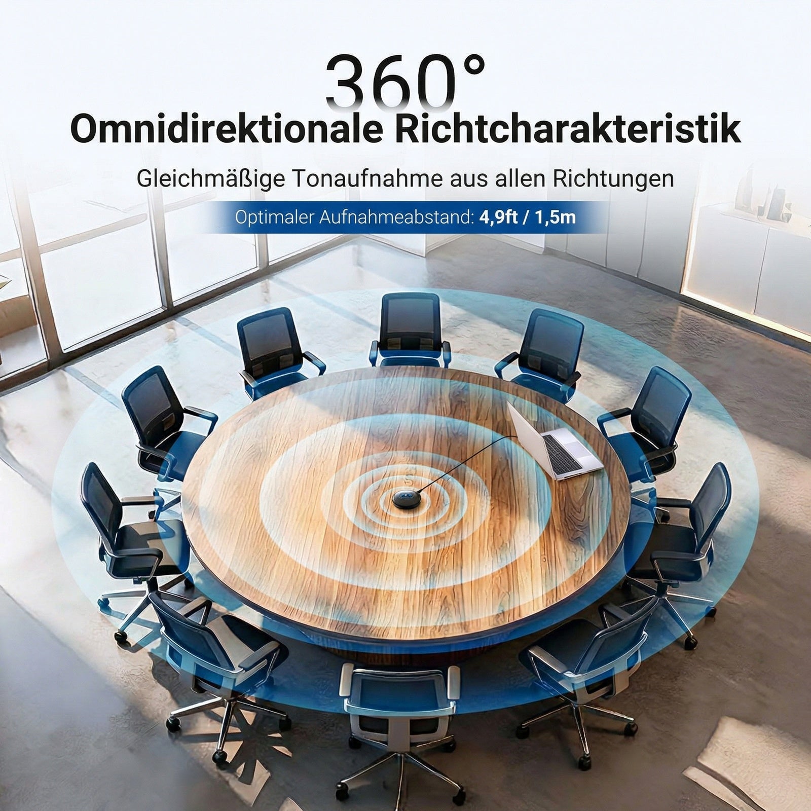- Omnidirektionale Richtcharakteristik- 360° omnidirektionale Richtcharakteristik für gleichmäßige Klangaufnahme aus allen Richtungen – tragbares und professionelles Mikrofon für Gruppen Online Meetings oder die Nutzung durch mehrere Personen im Konferenzraum. Optimale Aufnahmeentfernung: 1,5m / 4,9ft