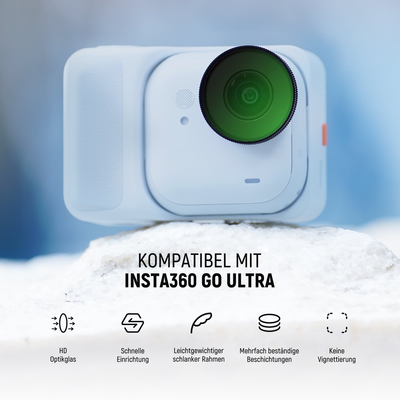 - Kompatibel mit GO Ultra- Kompatibel mit Insta360 GO Ultra Actioncam. Hinweis: Nicht für den Einsatz unter Wasser geeignet, da Wasser eindringen und die Bildqualität beeinträchtigen kann