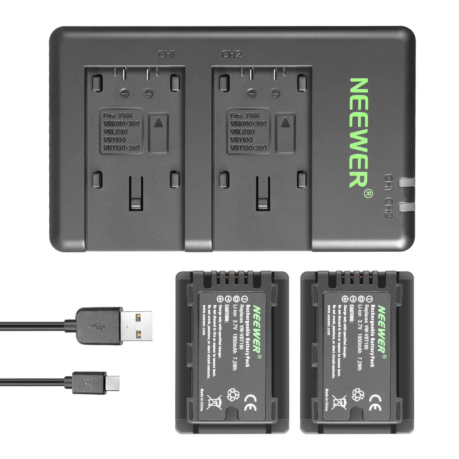 NEEWER 2er Pack Panasonic VW-VBT190 1950 mAh Akku & Duales USB Ladegerät Set